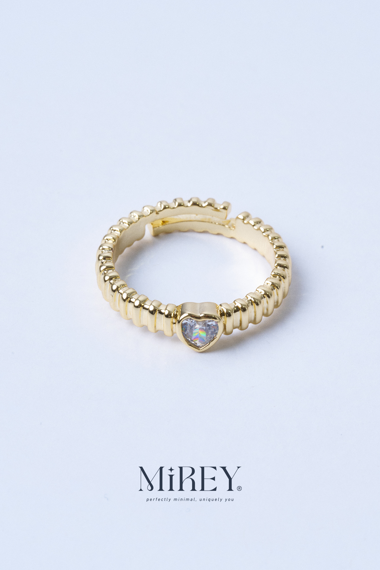 Taş Kalpli Gold Ayarlanabilir Çelik Yüzük